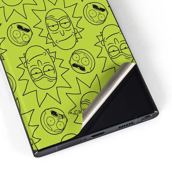 Skinit’s Rick and Morty All Over Print Samsung Galaxy Skin is exactly what it says it is: a repeat pattern of a devious Rick and an ever-skeptical Morty on a bright green background. Cover + protect your Samsung Galaxy smartphone without the bulkiness of a typical phone case with this Rick and Morty decal skin. The Skinit Rick and Morty All Over Print skin is cut with ultimate precision and crafted to fit on the back of your Samsung Galaxy. Included is a simple stress-free application and removal process, so you can show off and switch up the look on your S23 Ultra whenever you’d like.