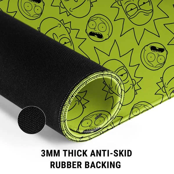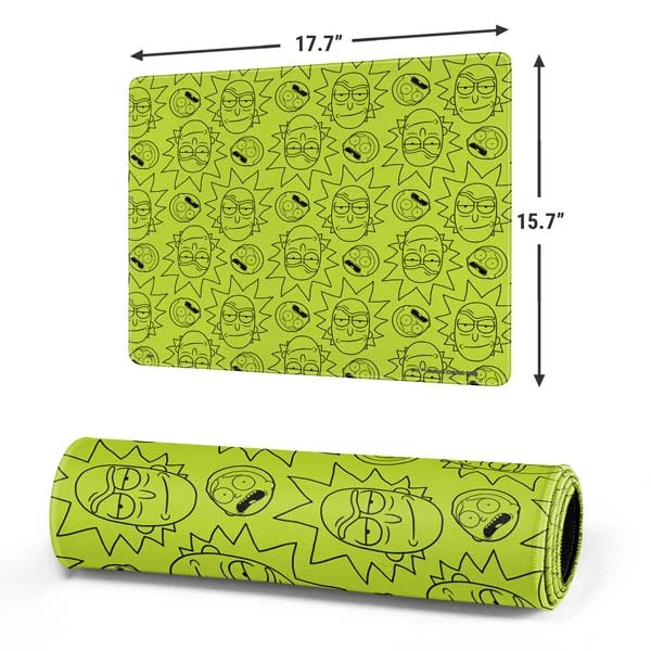 Skinit’s Rick and Morty All Over Print Mouse Pad is exactly what it says it is: a repeat pattern of a devious Rick and an ever-skeptical Morty on a bright green background. Personalize your entire desk while you stay in the game with the Rick and Morty All Over Print Gaming Mouse Pad from Skinit. This Rick and Morty mouse pad has a 3mm plush rubber construction + a large surface, proving ample room for your gaming mouse, keyboard and more.