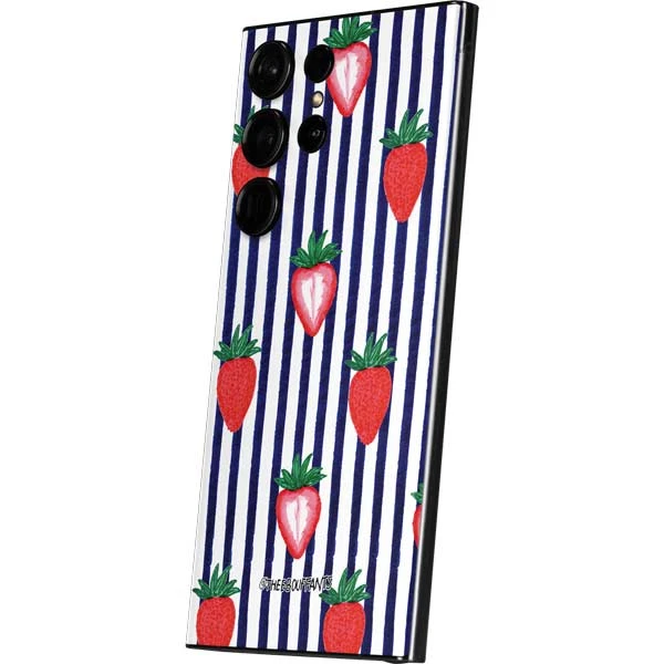 Feminine and chic is what the “Strawberries and Stripes” Samsung Galaxy Skin is all about! The blue and white striped background is classy while the strawberry pattern adds a subtle feminine finish. You’ll love the way the Bouffants and Broken Hearts “Strawberries and Stripes” Skin makes your Samsung Galaxy look while keeping it safe from everyday wear and tear at the same time. Cover + protect your Samsung Galaxy smartphone without the bulkiness of a typical phone case with this Blue decal skin. The Skinit Strawberries and Stripes skin is cut with ultimate precision and crafted to fit on the back of your Samsung Galaxy. Included is a simple stress-free application and removal process, so you can show off and switch up the look on your S23 Ultra whenever you’d like.