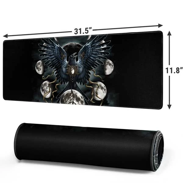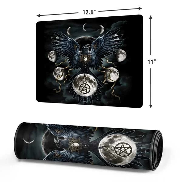 Personalize your entire desk while you stay in the game with the Crow and Moon Phases by Sarah Richter Gaming Mouse Pad from Skinit. This Fantasy & Dragons mouse pad has a 3mm plush rubber construction + a large surface, proving ample room for your gaming mouse, keyboard and more.