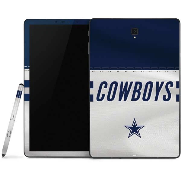 Personalize your Samsung Galaxy Tab tablet with an original NFL decal design and the Dallas Cowboys White Striped Galaxy Tab Skin by Skinit. Each NFL Samsung Galaxy Tab Skin is made to perfectly fit a wide variety of Galaxy Tab models, so you can let your style stand out no matter which generation Galaxy Tab you have. Created with durable 3M adhesive vinyl, this NFL Tablet skin is easy to apply & remove & won’t leave any messy sticker residue behind on your Samsung tablet. The Dallas Cowboys White Striped Galaxy Tab decal is available for the following Samsung Galaxy Tab models:
