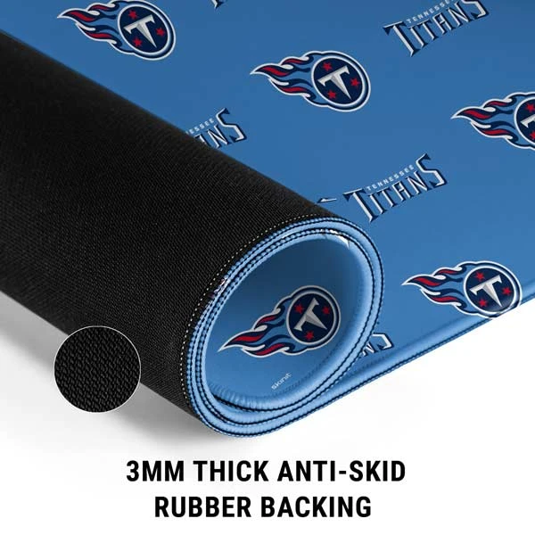 The Tennessee Titans Blitz Series Mouse Pad is officially licensed by the NFL and displays the Titans team colors and logo in a unique step and repeat pattern. Buy this Tennessee Titans Mouse Pad online at Skinit today. Personalize your entire desk while you stay in the game with the Tennessee Titans Blitz Series Gaming Mouse Pad from Skinit. This Tennessee Titans mouse pad has a 3mm plush rubber construction + a large surface, proving ample room for your gaming mouse, keyboard and more.