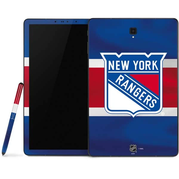 Personalize your Samsung Galaxy Tab tablet with an original NHL decal design and the New York Rangers Jersey Galaxy Tab Skin by Skinit. Each NHL Samsung Galaxy Tab Skin is made to perfectly fit a wide variety of Galaxy Tab models, so you can let your style stand out no matter which generation Galaxy Tab you have. Created with durable 3M adhesive vinyl, this NHL Tablet skin is easy to apply & remove & won’t leave any messy sticker residue behind on your Samsung tablet. The New York Rangers Jersey Galaxy Tab decal is available for the following Samsung Galaxy Tab models: