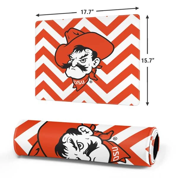 Personalize your entire desk while you stay in the game with the Oklahoma State Chevron Print Gaming Mouse Pad from Skinit. This Oklahoma State University mouse pad has a 3mm plush rubber construction + a large surface, proving ample room for your gaming mouse, keyboard and more.