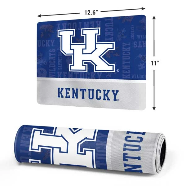 Personalize your entire desk while you stay in the game with the University of Kentucky Jersey Split Gaming Mouse Pad from Skinit. This University of Kentucky mouse pad has a 3mm plush rubber construction + a large surface, proving ample room for your gaming mouse, keyboard and more.
